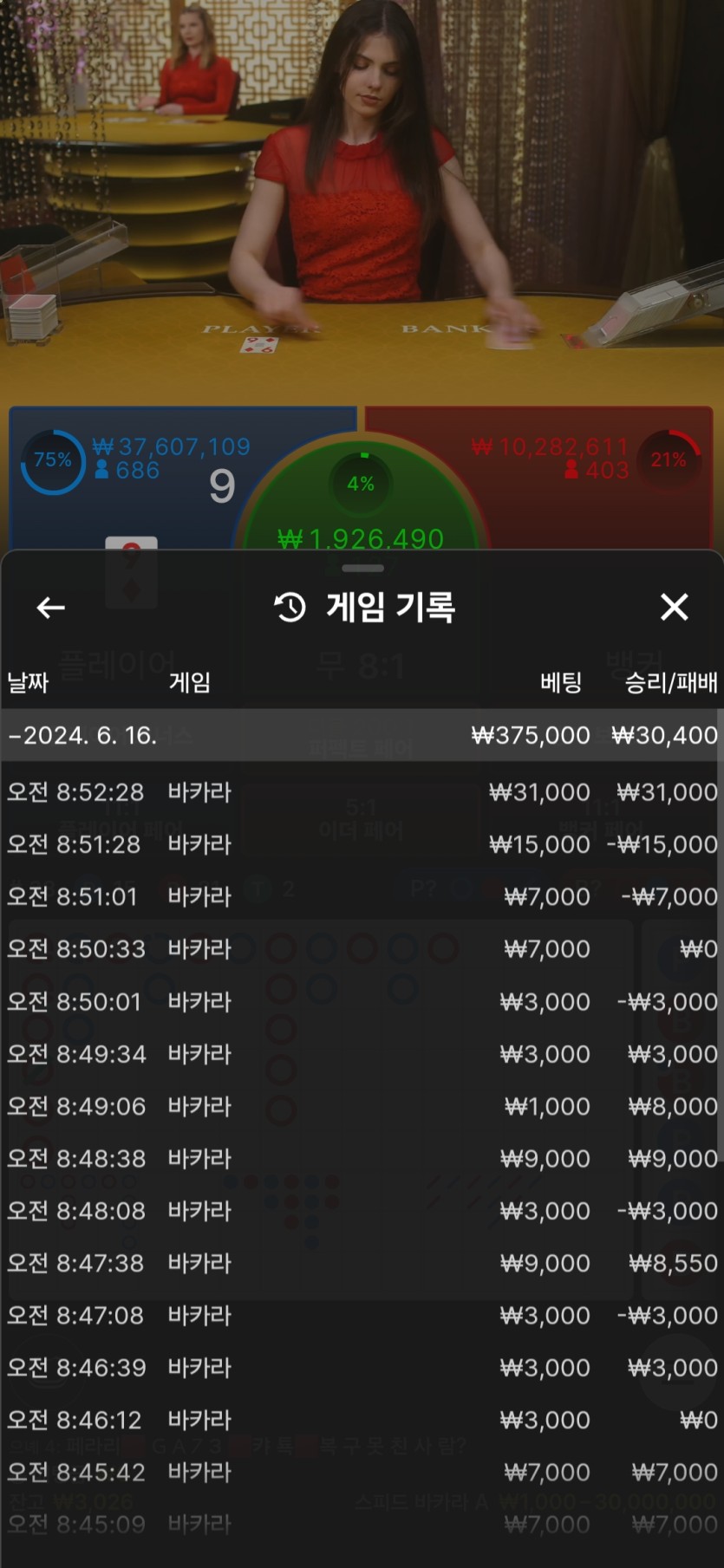 같고, 다름 갯수가 2~3개차이인 방에들어가서 배팅시작했는데 격차를 벌려주더라구요ㅎ
